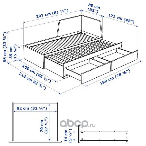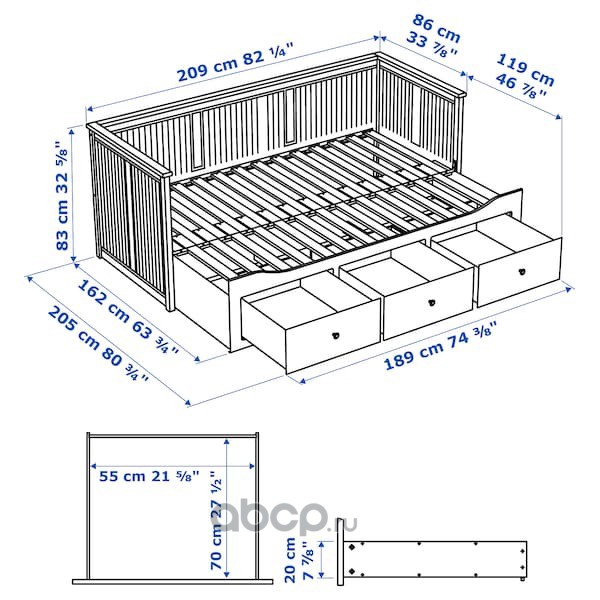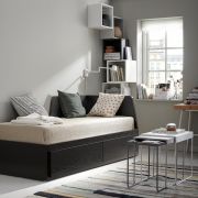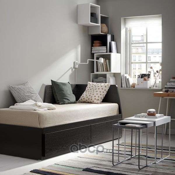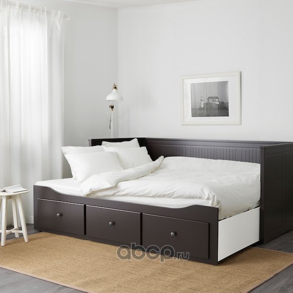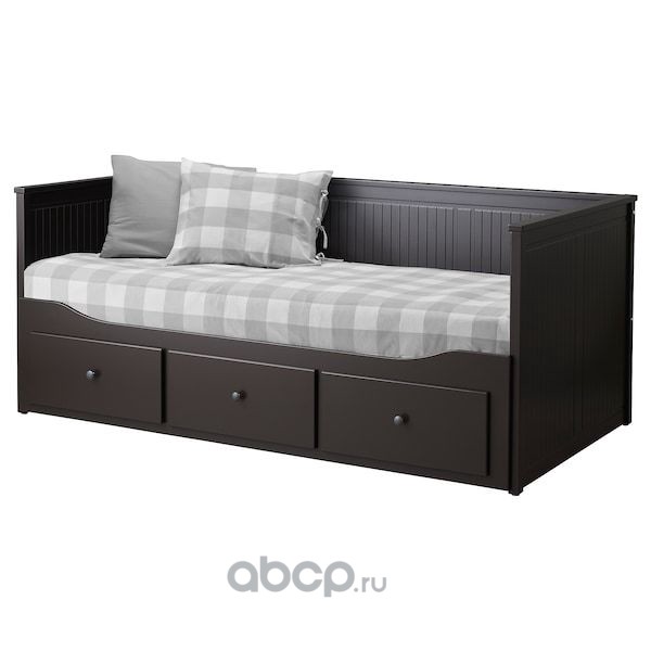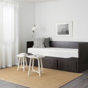 HEMNES ХЕМНЭС Кушетка с 2 матрасами/3ящиками, черно-коричневый/оготнес жесткий 80X200см