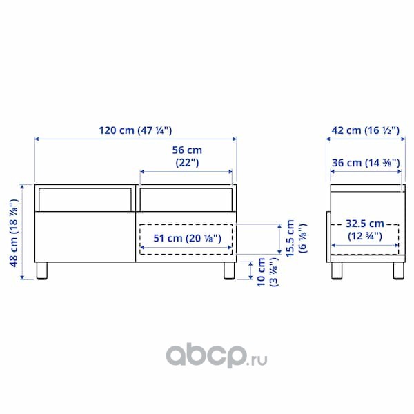 BESTÅ БЕСТО Тумба под ТВ, с ящиками, черно-коричневый/тиммер/стуббар черный 120X42X48см