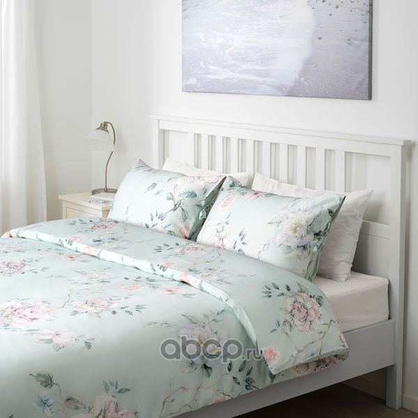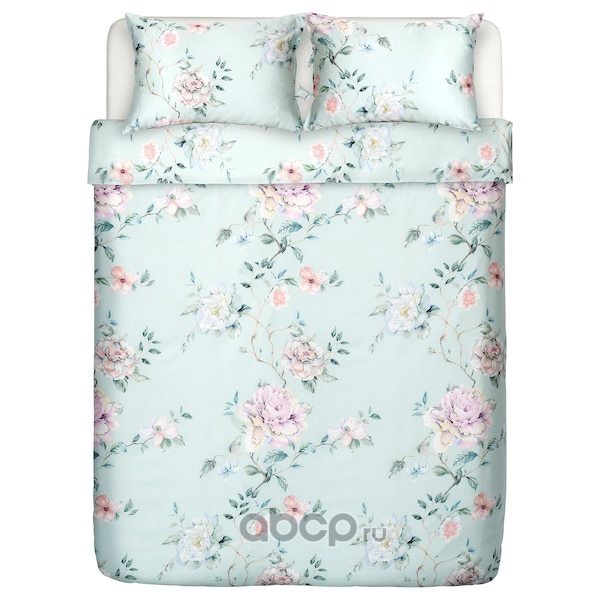 PLATTMAL ПЛАТТМАЛ Пододеяльник и 2 наволочки, цветочный орнамент/зеленый 200X200/50X70см