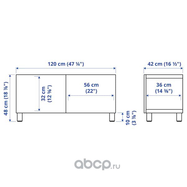 BESTÅ БЕСТО Тумба под ТВ, с дверцами, белый БЬЁРКЁВ/МЕЙЬЕРП/березовый шпон 120X42X48см