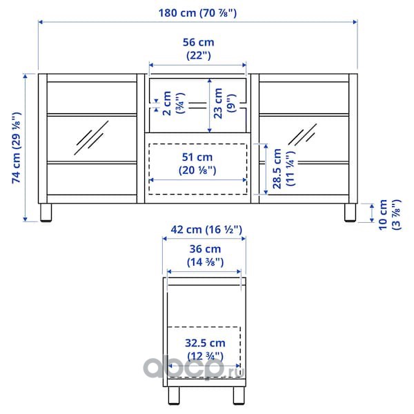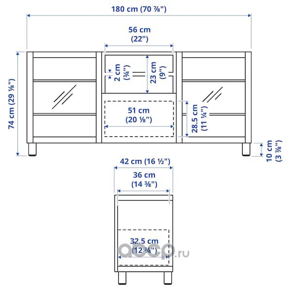 BESTÅ БЕСТО Тумба под ТВ, с ящиками, белый мортвикен/Лаппвик/стуббарп белый 180X42X74см
