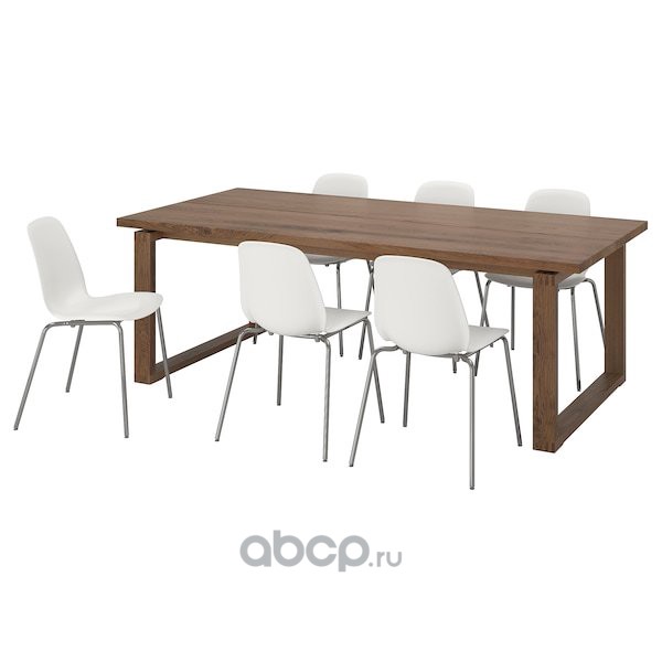 MÖRBYLÅNGA МОРБИЛОНГА / LEIFARNE ЛЕЙФ-АРНЕ Стол и 6 стульев, коричневый/белый 220X100см