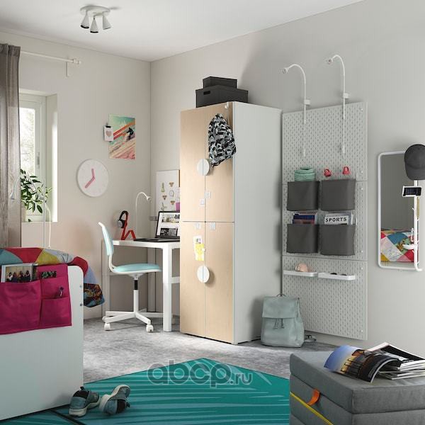 SMÅSTAD СМОСТАД / OPPHUS ОПХУС Гардероб, белый береза/с 2 платяными штангами 60X57X181см