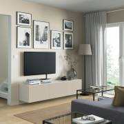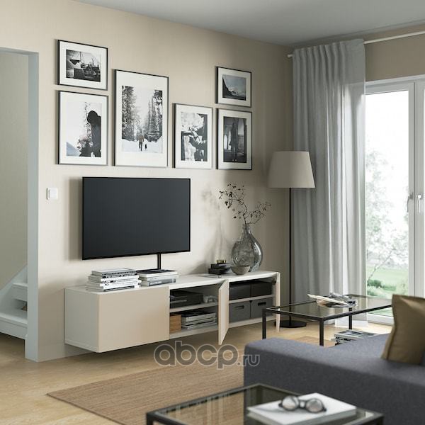 BESTÅ БЕСТО Тумба под ТВ, с дверцами, белый/Лаппвикен светло-серый/бежевый 180X42X38см