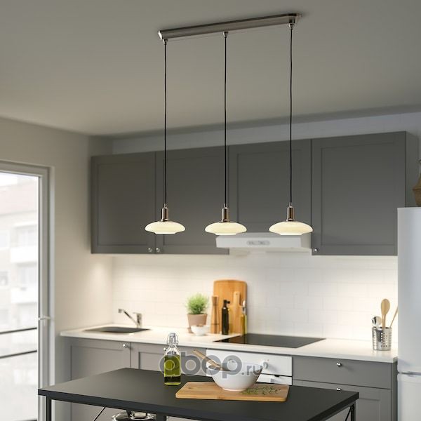 TÄLLBYN ТЭЛЛЬБЮН Подвесной светильник с 3 лампами, никелированный/молочный стекло 89см