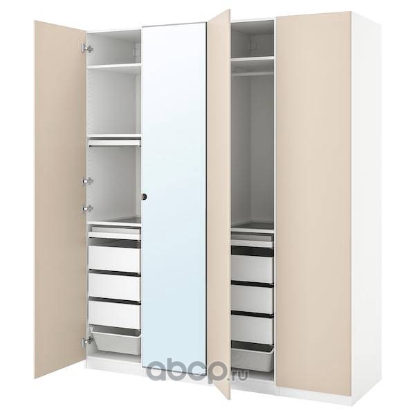 PAX ПАКС / REINSVOLL/VIKEDAL РЕИНСВОЛЛ/ВИКЕДАЛ Гардероб, комбинация, белый/серо-бежевый зеркальное стекло 200X60X236см
