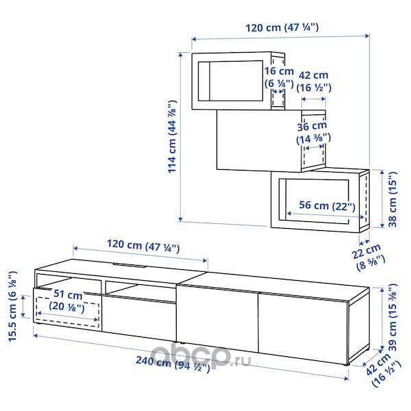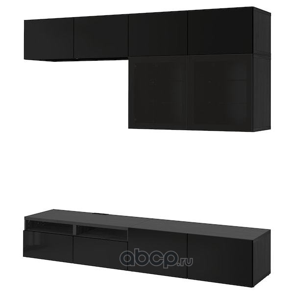 BESTÅ БЕСТО Шкаф для ТВ, комбин/стеклян дверцы, черно-коричневый/Сельсвикен глянцевый/черный дымчатое стекло 240X42X231см