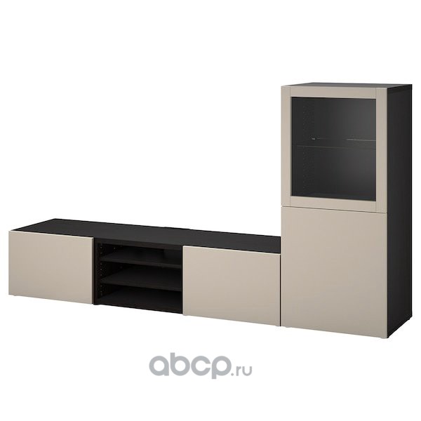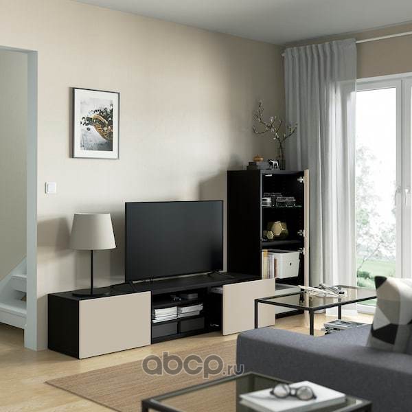 BESTÅ БЕСТО Комбинация для ТВ/стеклянные дверцы, черно-коричневый Синдвик/Лаппвикен светло-серый/бежевый 240X42X129см