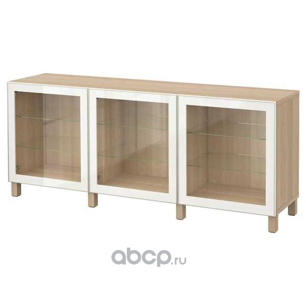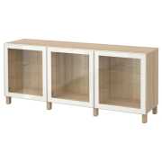 BESTÅ БЕСТО Комбинация для хранения с дверцами, под беленый дуб/глассвик/стуббарп белый прозрачное стекло 180X42X74см