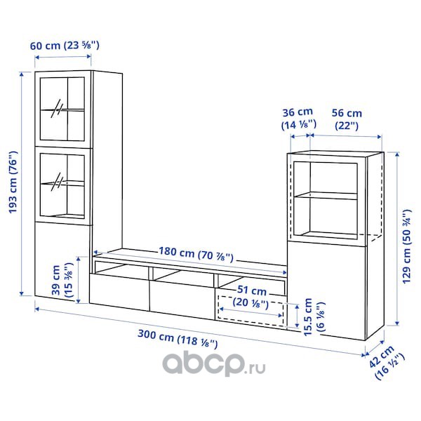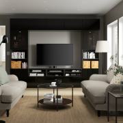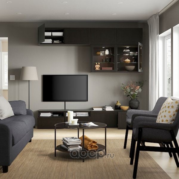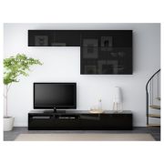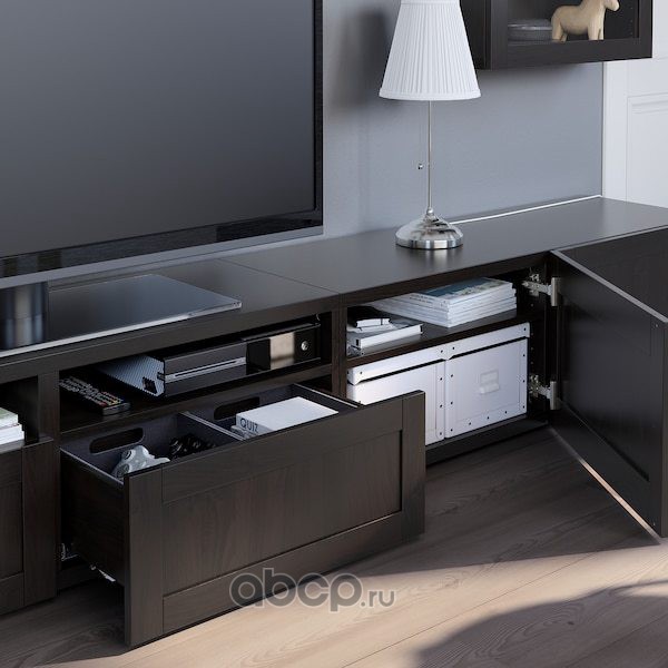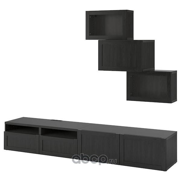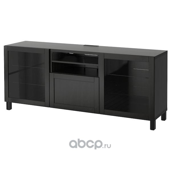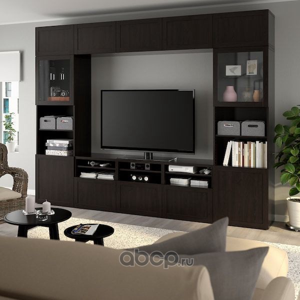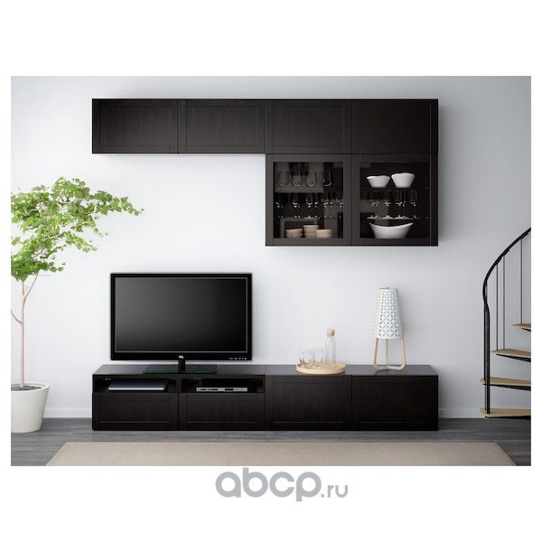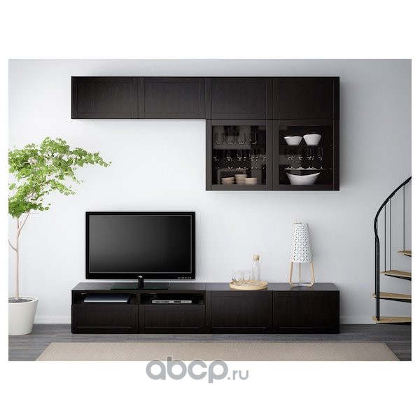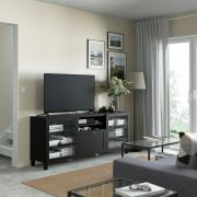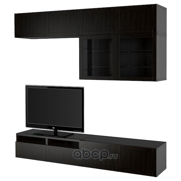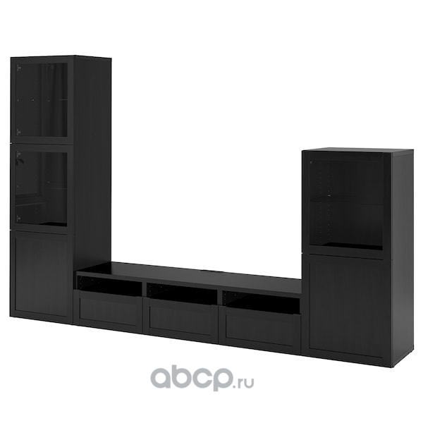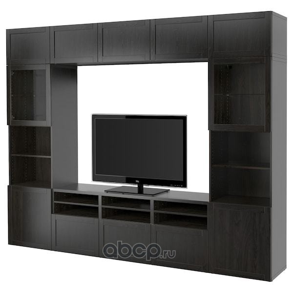 BESTÅ БЕСТО Шкаф для ТВ, комбин/стеклян дверцы, черно-коричневый/Ханвикен черно-коричневый прозрачное стекло 300X42X193см