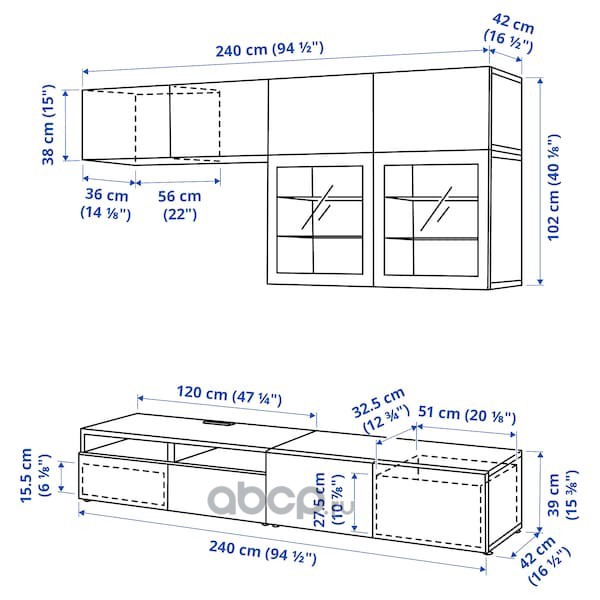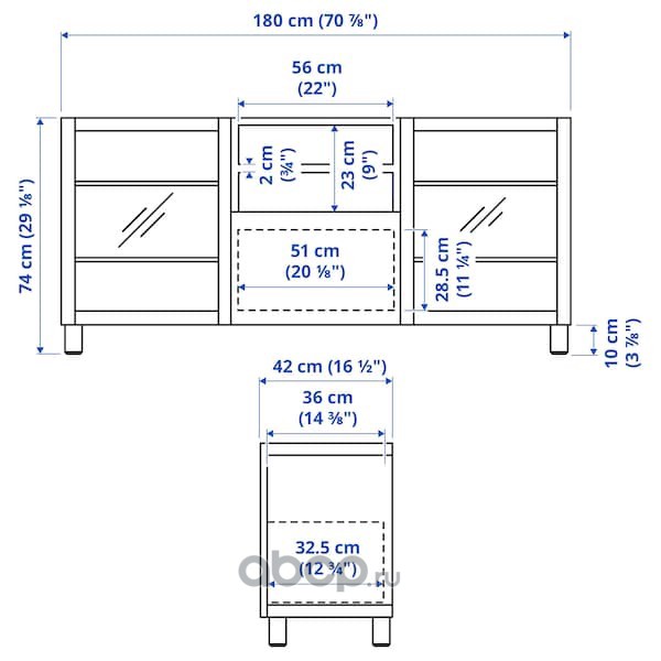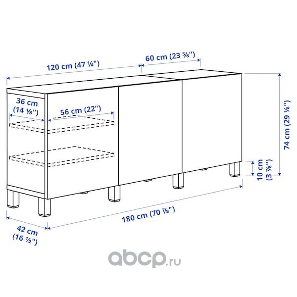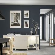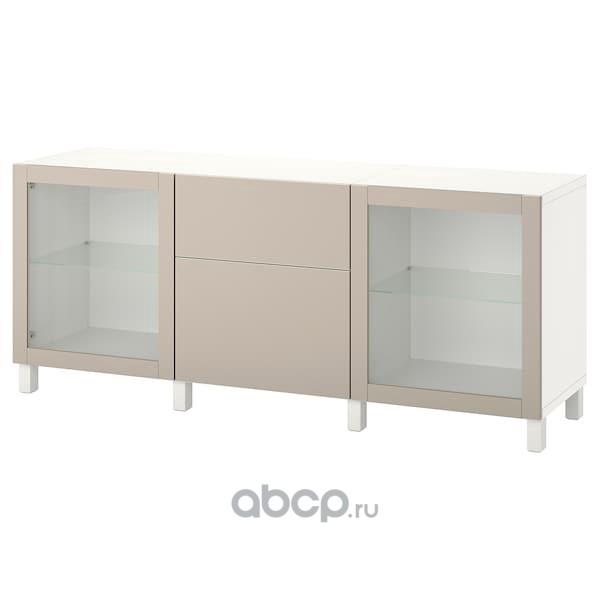 BESTÅ БЕСТО Комбинация для хранения с ящиками, белый Лаппвик/стуббарп/светлый серо-бежевый прозрачное стекло 180X42X74см
