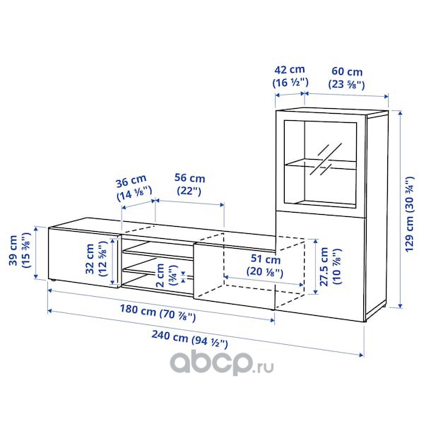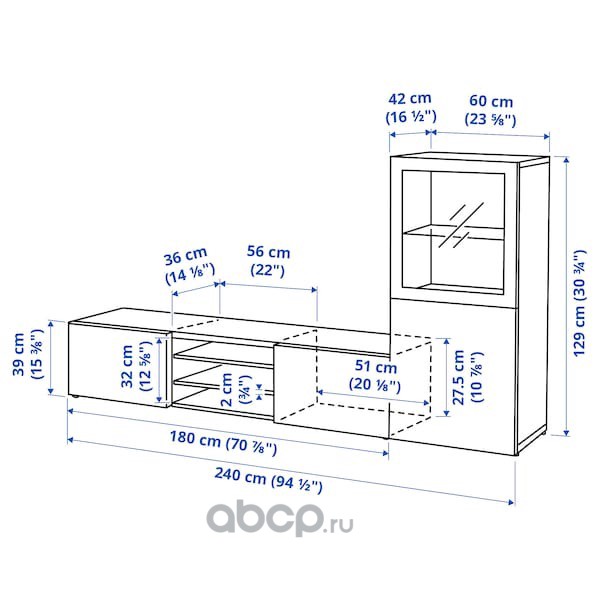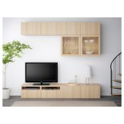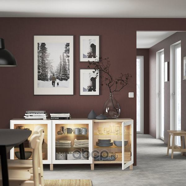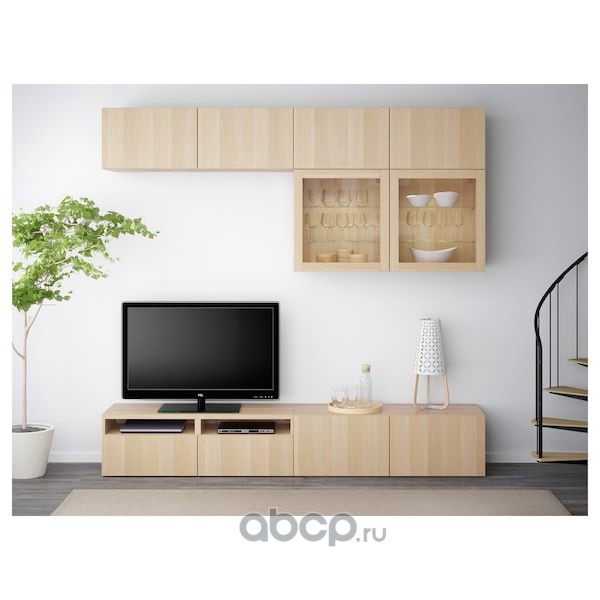BESTÅ БЕСТО Шкаф для ТВ, комбин/стеклян дверцы, под беленый дуб/Лаппвикен под беленый дуб, прозрачное стелко 240X42X231см