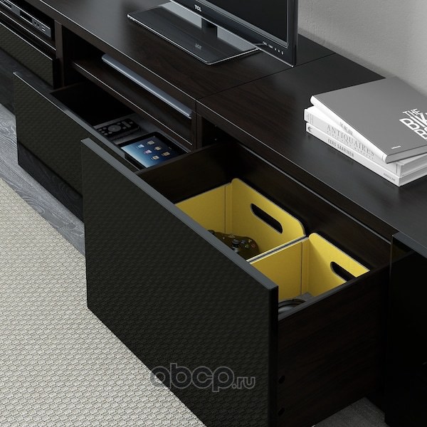 BESTÅ БЕСТО Тумба под ТВ, с ящиками, черно-коричневый/ХАНВИКЕН/СТУББАРП черно-коричневый прозрачное стекло 180X42X74см