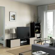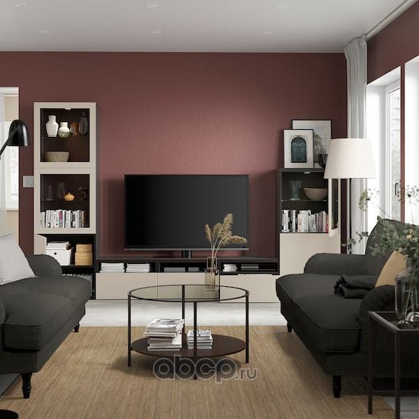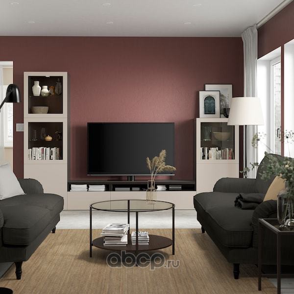 BESTÅ БЕСТО Комбинация для ТВ/стеклянные дверцы, черно-коричневый Синдвик/Лаппвикен светло-серый/бежевый 300X42X193см