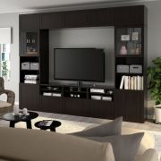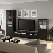 BESTÅ БЕСТО Шкаф для ТВ, комбин/стеклян дверцы, черно-коричневый/Ханвикен черно-коричневый прозрачное стекло 300X42X231см