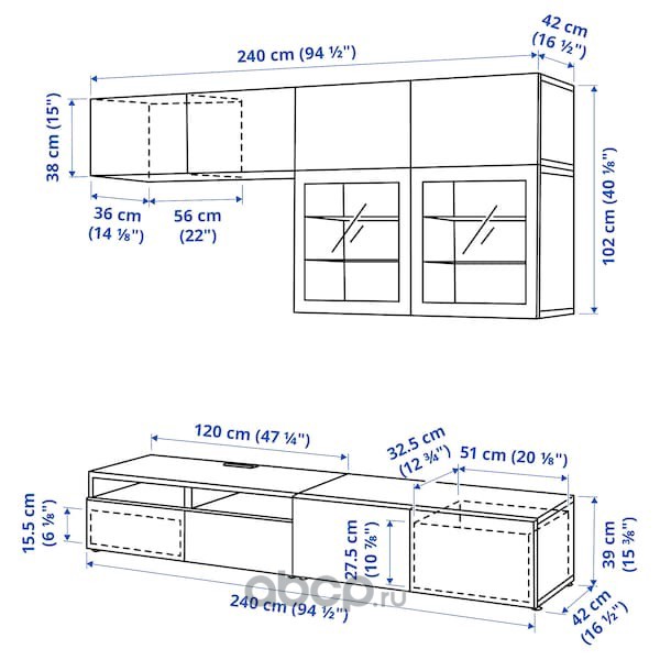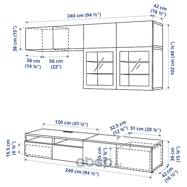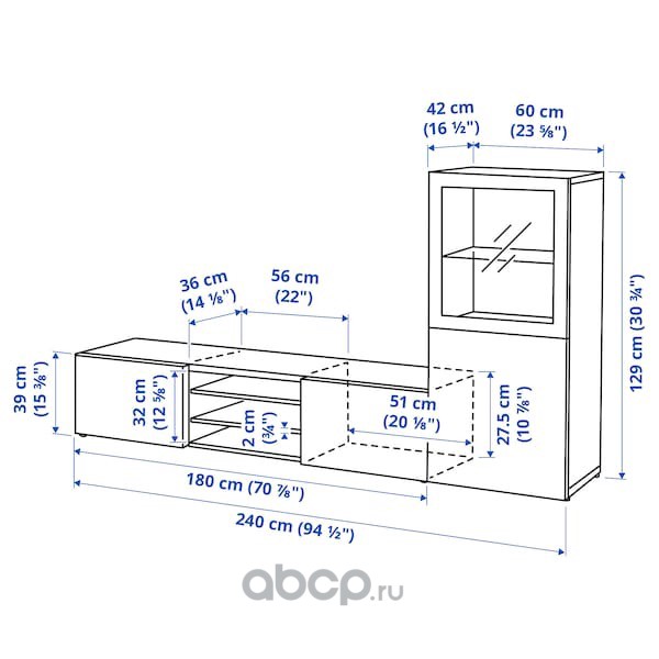 BESTÅ БЕСТО Шкаф для ТВ, комбин/стеклян дверцы, черно-коричневый/Сельсвикен глянцевый/черный прозрачное стекло 240X42X129см