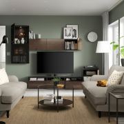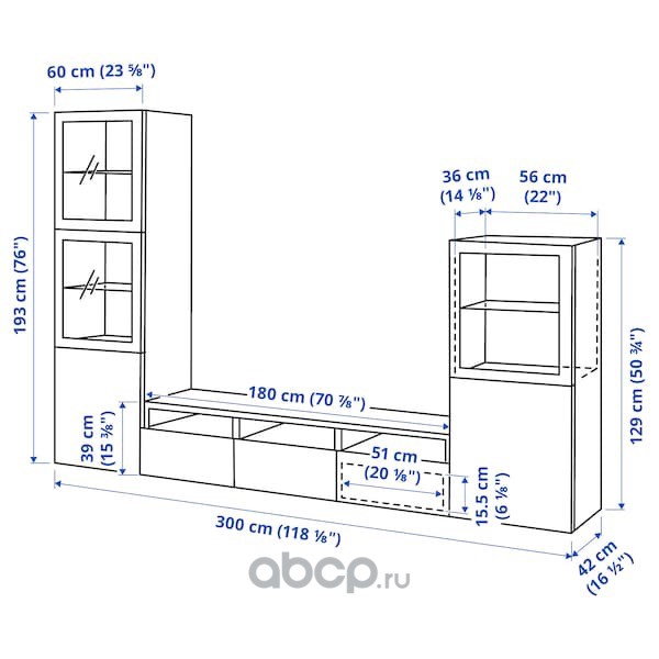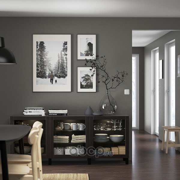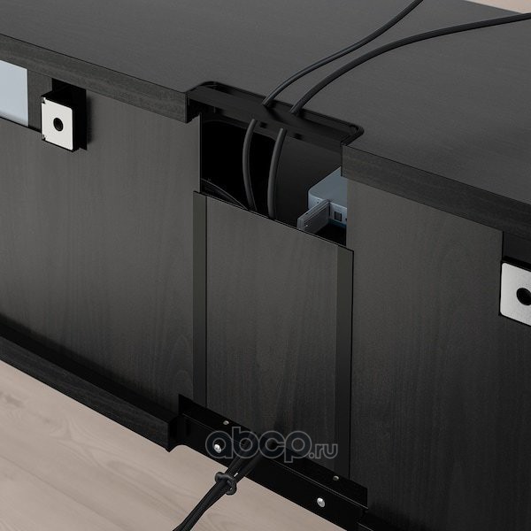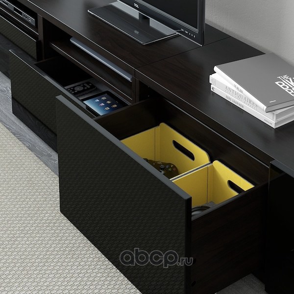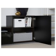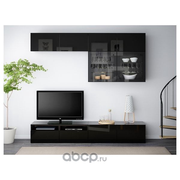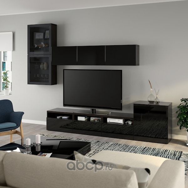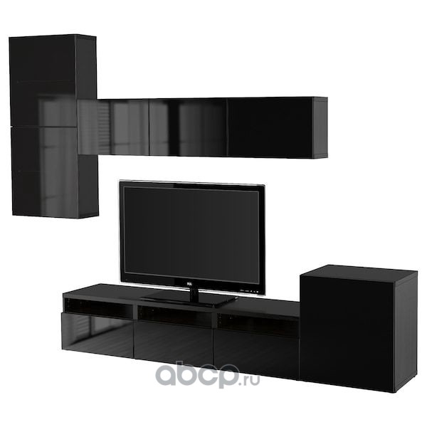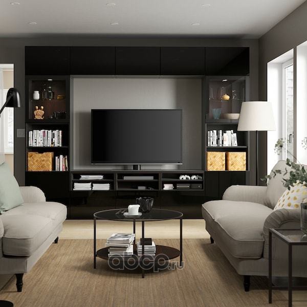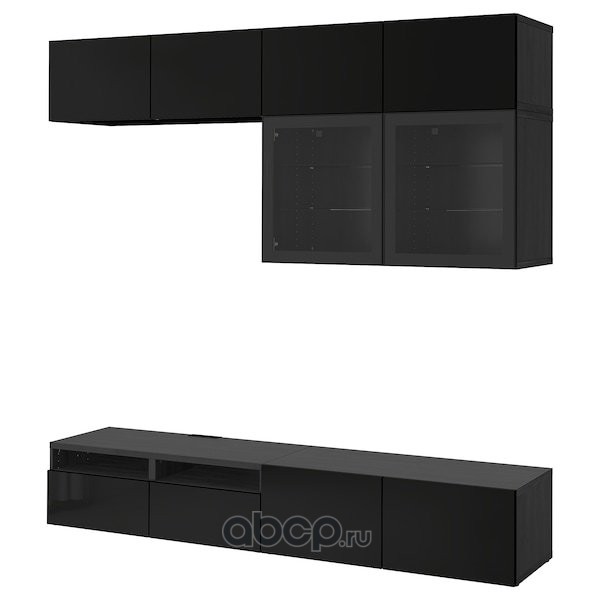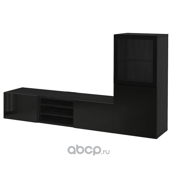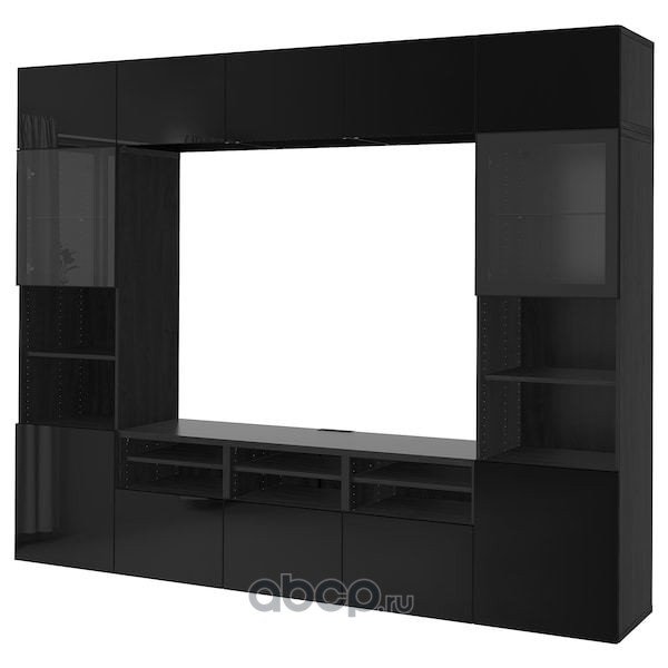 BESTÅ БЕСТО Шкаф для ТВ, комбин/стеклян дверцы, черно-коричневый/Сельсвикен глянцевый/черный прозрачное стекло 300X42X231см