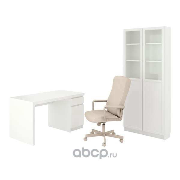MALM/MILLBERGET МАЛЬМ/МИЛЛБЕРГЕТ / BILLY/OXBERG БИЛЛИ/ОКСБЕРГ Стол и комбинация для хранения, и рабочий стул белый/бежевый