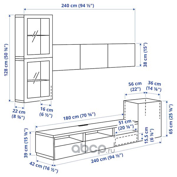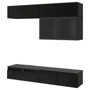 BESTÅ БЕСТО Шкаф для ТВ, комбин/стеклян дверцы, черно-коричневый/Сельсвикен глянцевый/черный прозрачное стекло 240X42X231см