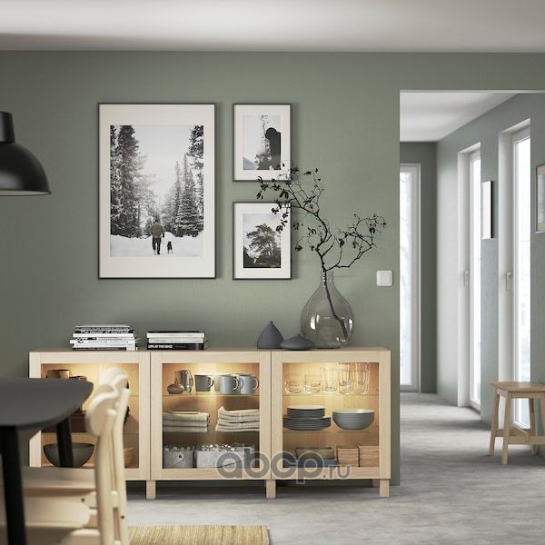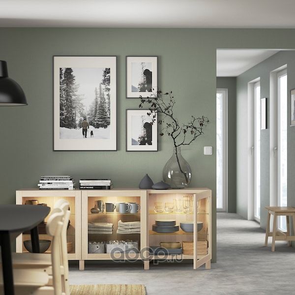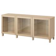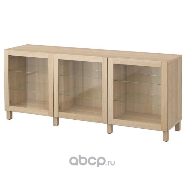 BESTÅ БЕСТО Комбинация для хранения с дверцами, под беленый дуб/синдвик/стуббарп под беленый дуб, прозрачное стелко 180X42X74см