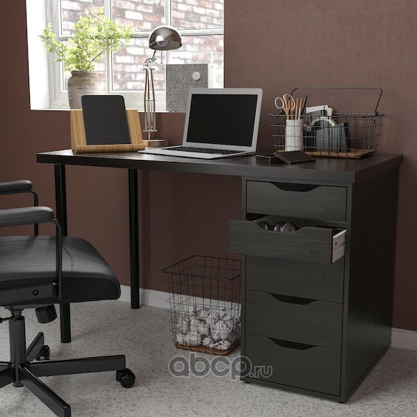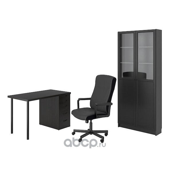 LAGKAPTEN/MILLBERGET ЛАГКАПТЕН/МИЛЛ / BILLY/OXBERG БИЛЛИ/ОКСБЕРГ Стол и комбинация для хранения, и рабочий стул черно-коричневый/черный