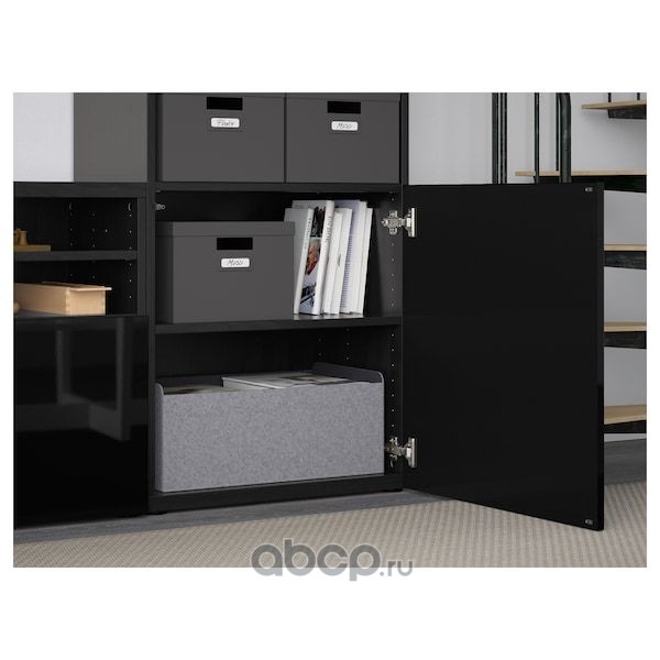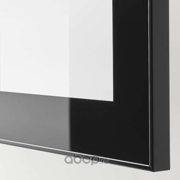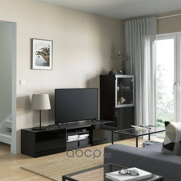 BESTÅ БЕСТО Комбинация для ТВ/стеклянные дверцы, черно-коричневый/Сельсвикен глянцевый/черный прозрачное стекло 300X42X193см