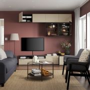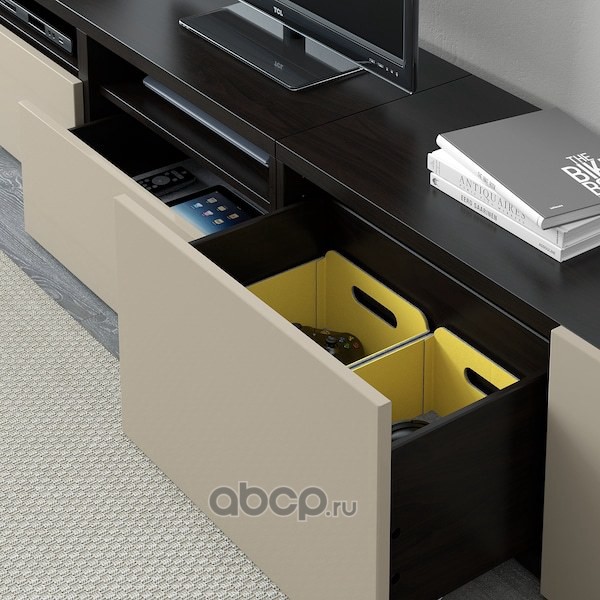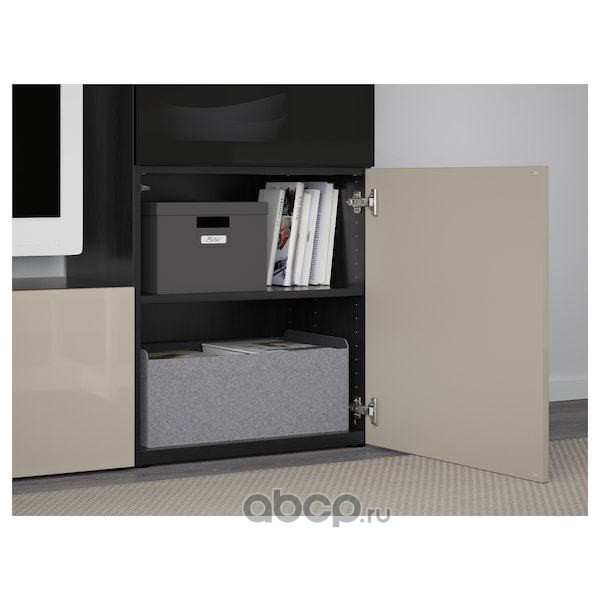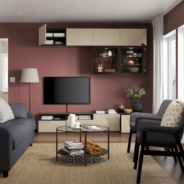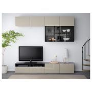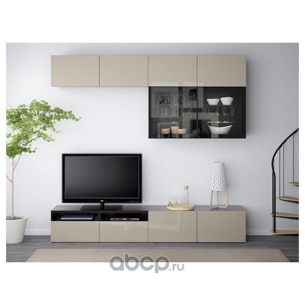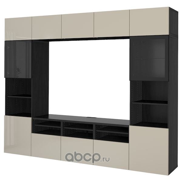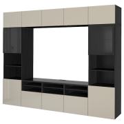 BESTÅ БЕСТО Шкаф для ТВ, комбин/стеклян дверцы, черно-коричневый/Сельсвикен глянцевый/бежевый прозрачное стекло 300X42X231см