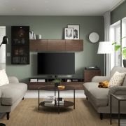 BESTÅ БЕСТО Комбинация для хранения с дверцами, черно-коричневый/синдвик/стуббарп черно-коричневый прозрачное стекло 180X42X74см