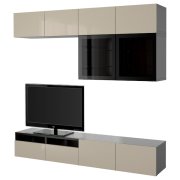 BESTÅ БЕСТО Шкаф для ТВ, комбин/стеклян дверцы, черно-коричневый/Сельсвикен глянцевый/бежевый/дымчатое стекло 240X42X129см