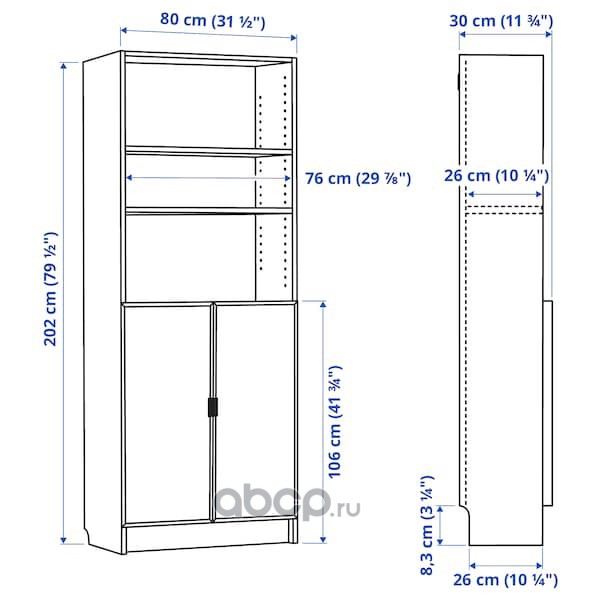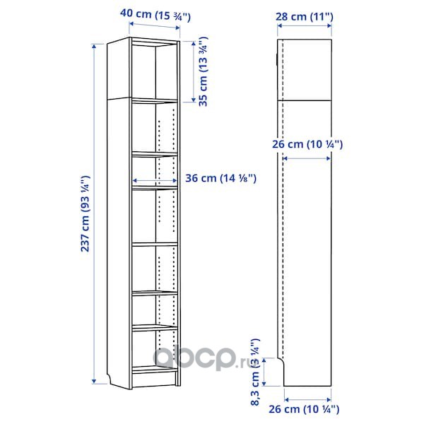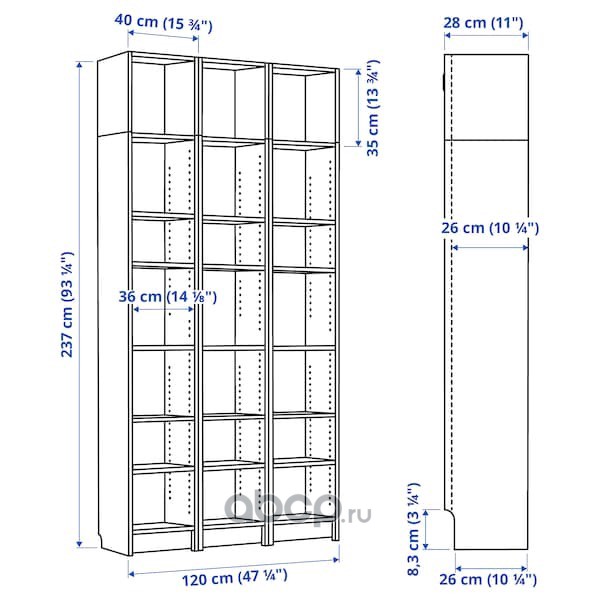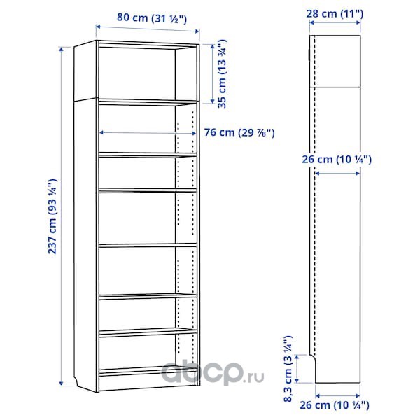 BILLY БИЛЛИ Стеллаж, коричневый ясеневый шпон 40x28x237 см/кг