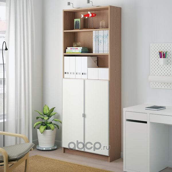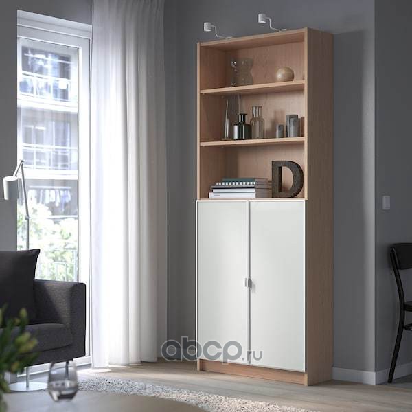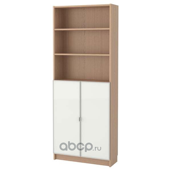 BILLY БИЛЛИ / MORLIDEN МОРЛИДЕН Шкаф книжный со стеклянными дверьми, дубовый шпон, беленый/стекло 80x30x202 см/кг