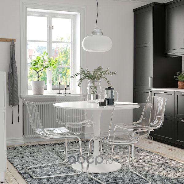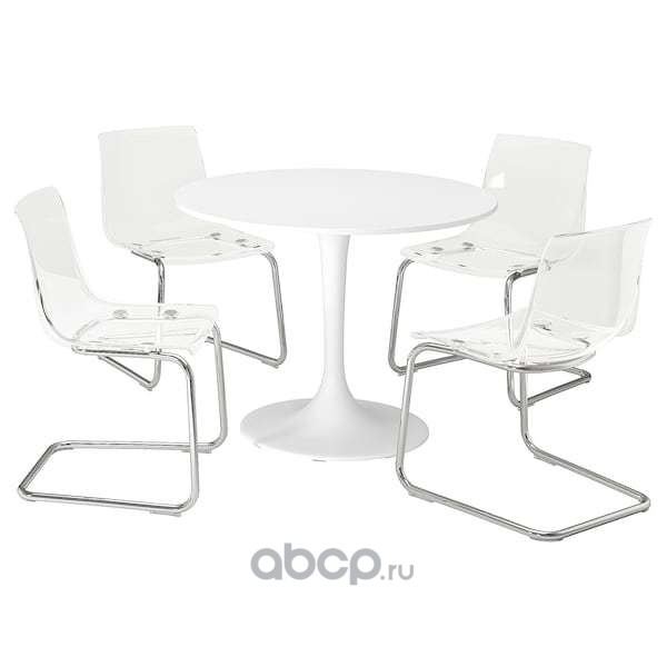 DOCKSTA ДОКСТА / TOBIAS ТОБИАС Стол и 4 стула, белый белый/прозрачный хромированный103 см