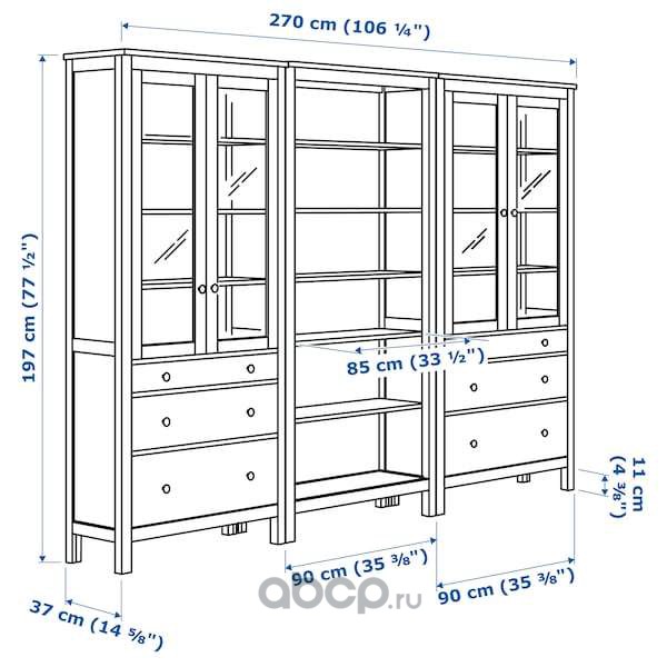 HEMNES ХЕМНЭС Комб для хран с дверц/ящ, черно-коричневый/светло-коричневый 270x37x197 см
