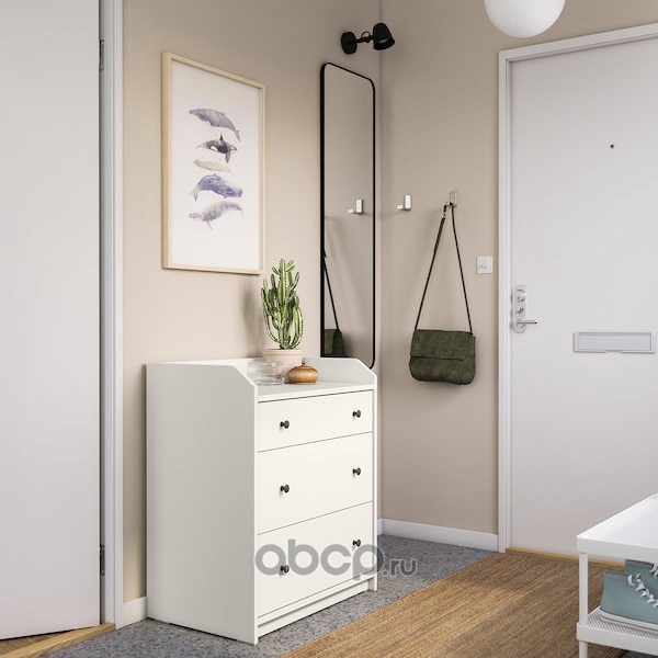 HAUGA ХАУГА Комод с 3 ящиками, белый 70X84см