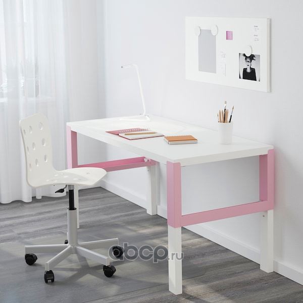 PÅHL ПОЛЬ Письменный стол, белый/розовый 128X58см