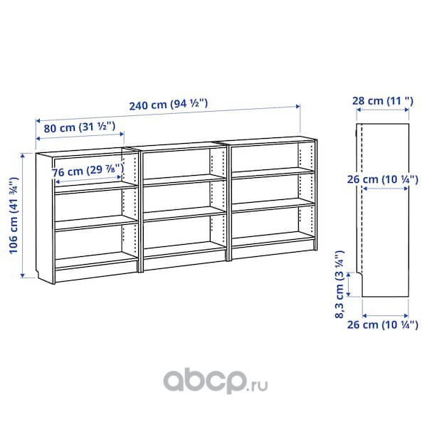 BILLY БИЛЛИ Стеллаж, черно-коричневый 240x28x106см