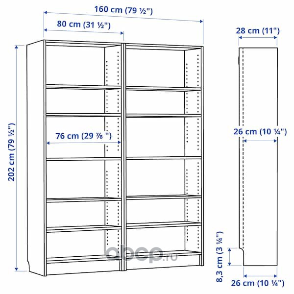 BILLY БИЛЛИ Стеллаж, черно-коричневый 160x28x202см