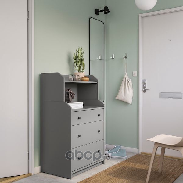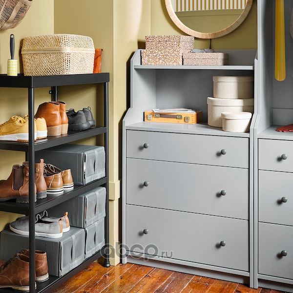 HAUGA ХАУГА Комод с 3 ящиками/полкой, серый 70X116см
