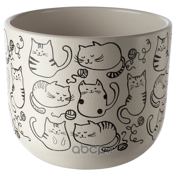 RUNDMYNTA РУНДМИНТА Горшок цветочный, белый/кот 12см