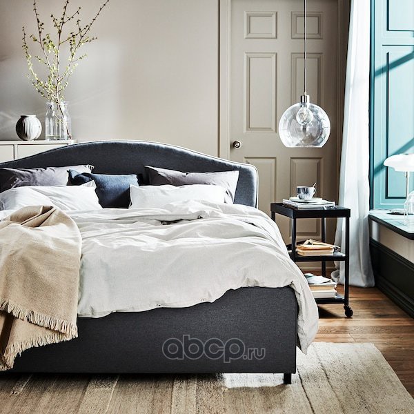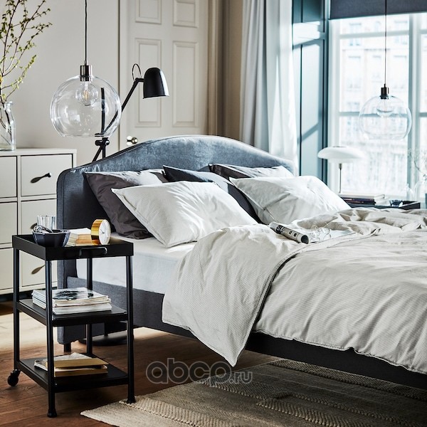 HAUGA ХАУГА Каркас кровати с обивкой, Висле серый 140X200см