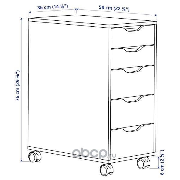 ALEX АЛЕКС Тумба с ящиками на колесах, белый/черный 36X76см