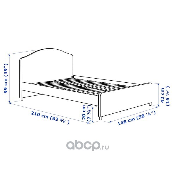 HEMNES ХЕМНЭС Каркас кровати, белая морилка/Лонсет 90x200см