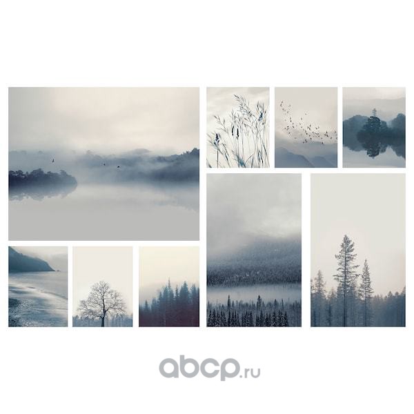 GRÖNBY ГРОНБИ Картина, 9 шт., Пейзаж в синих тонах 179X112см