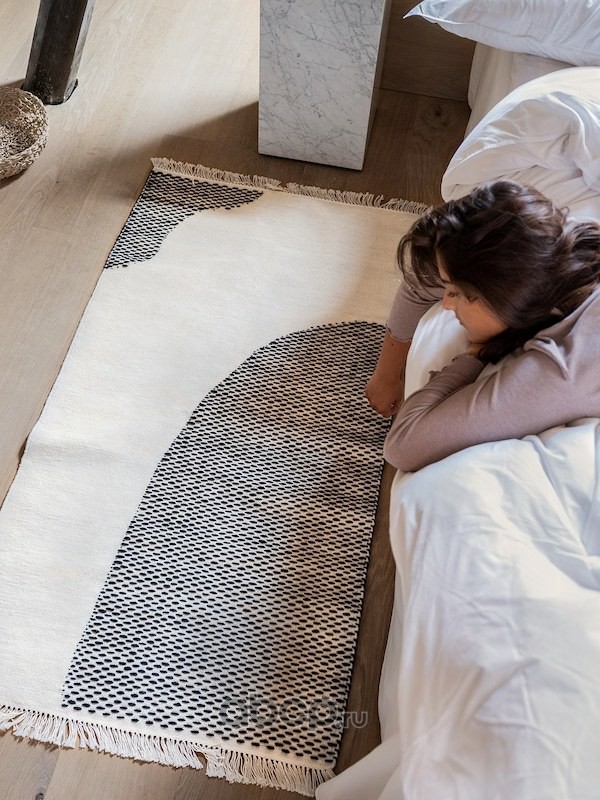 TÖRSLEV ТЁРСЛЕВ Ковер безворсовый, полоска белый/черный 80X150см