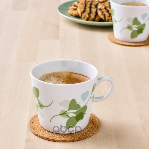 STILENLIG СТИЛЕНЛИГ Кружка, орнамент «листья» белый/зеленый 33сл