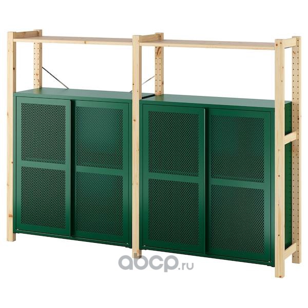 IVAR ИВАР 2 секции/полки/шкафы, сосна/зеленый сетка 175x30x124см