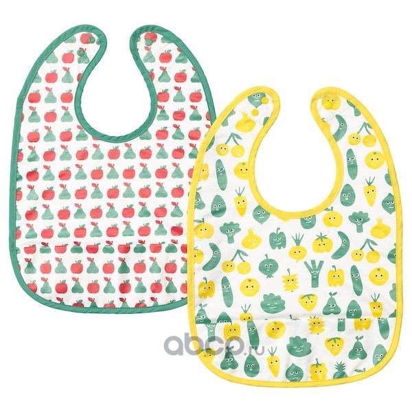 MATVRÅ МЭТВРО Нагрудник, орнамент «фрукты/овощи»/зеленый желтый