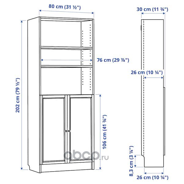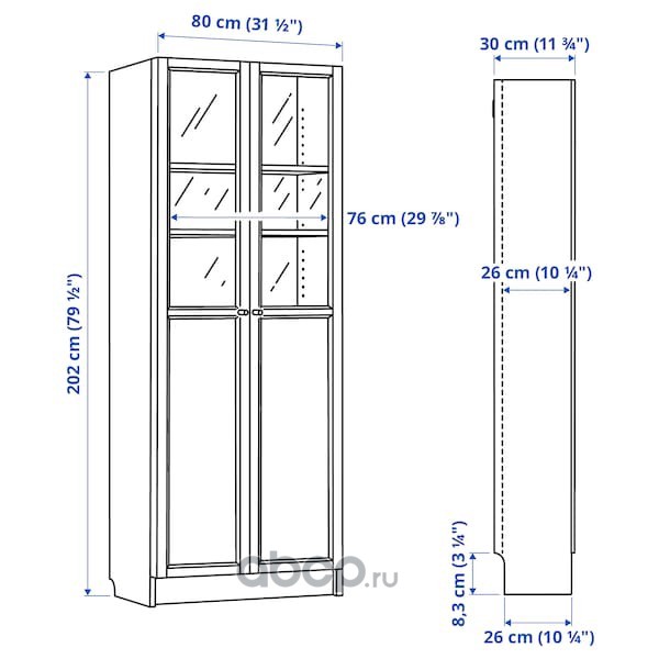 BILLY БИЛЛИ Стеллаж/панельные/стеклянные двери, белый 80X30X202см