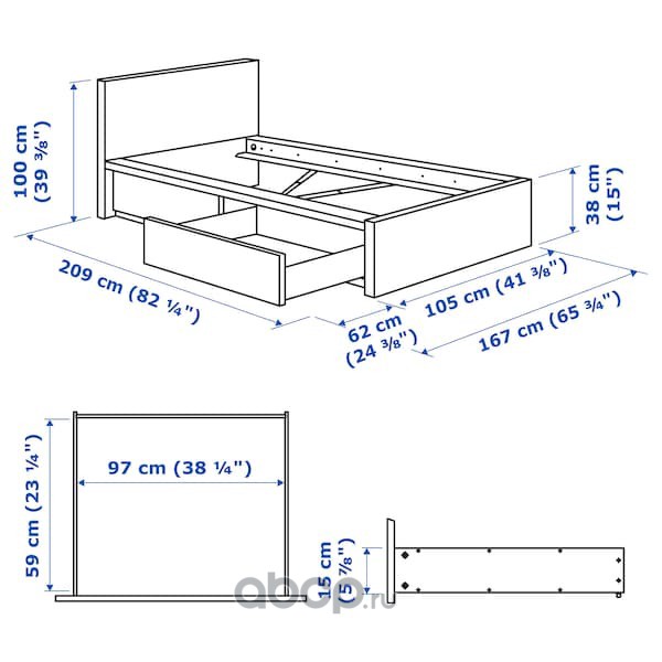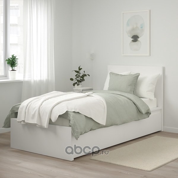 MALM МАЛЬМ Каркас кровати+2 кроватных ящика, белый/Лурой 90x200см