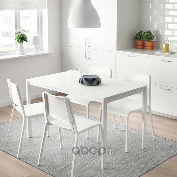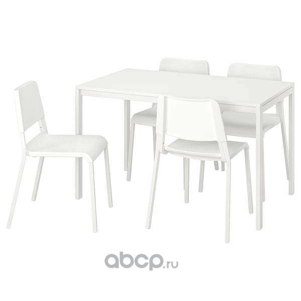 MELLTORP МЕЛЬТОРП / TEODORES ТЕОДОРЕС Стол и 4 стула, белый 125см